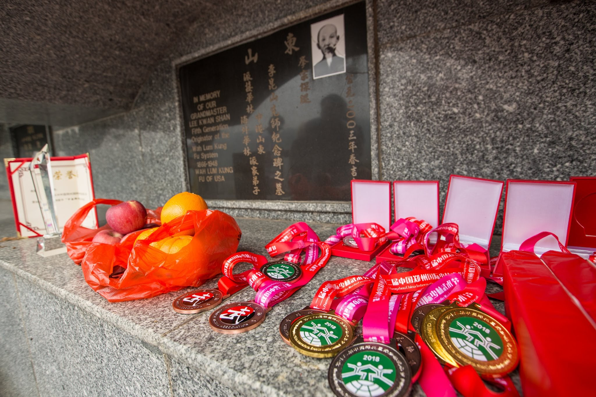 Wah Lum members are especially proud as they enter the doors of the temple to discover the Wah Lum stone tablet, the first one ever to be erected at the temple.  The tree that is planted behind the tablet is also quite special, as it is the oldest tree in the courtyard.